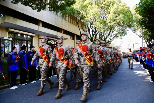 仪式最后,与会领导与全体新兵合影留念。新兵们胸佩红花、肩披绶带,在师生和家长们的夹道欢送中,迈着坚定的步伐踏上新征程。