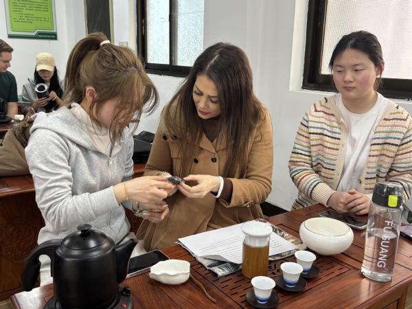 弘扬传统文化,感受非遗魅力。王海丽和唐哓英两位老师带领法国学生走进余天成中医药馆,学习传统八段锦养生功法,亲手制作中草药香囊,他们感受到了中医药文化的深厚底蕴。王桂霞老师为法国学生传授中国茶道文化,包括茶的识别、泡茶技艺和礼仪等,法国学生体验到了中国茶道的优雅与禅意。此外,路以兴、王颖、郁琦等老师带领法国学生参与了中国非物质文化遗产各类体验课,和他们共同探索剪纸、钩编、顾绣等传统手工艺活动,亲手制作了叶榭软糕,他们深刻体会到了中国传统工艺的精湛和匠心,激发了他们对中国传统文化的浓厚兴趣和尊重。