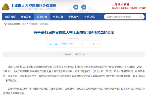 根据《上海市人力资源和社会保障局等七部门关于印发〈关于推进本市职业技能竞赛体系建设的若干意见〉的通知》(沪人社职〔2021〕359号)、《关于组织开展第48届世界技能大赛上海市集训场所申报认定工作的通知》(沪人社职〔2025〕60号)的相关规定,学院积极组织申报,最终3个项目集训基地获批。