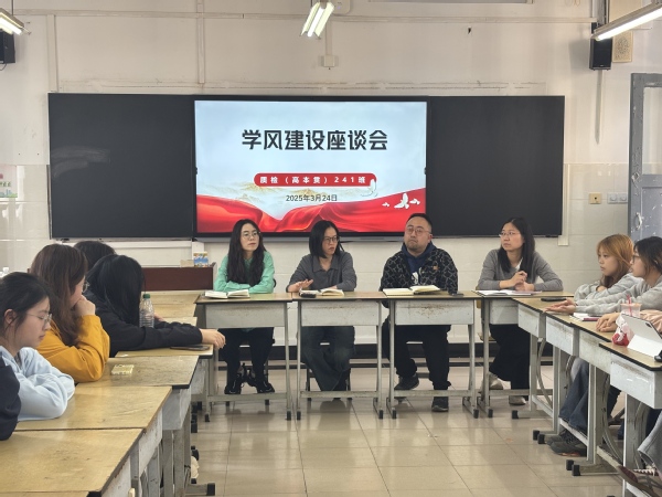 3月24日下午,生药系质检(高本贯)241班在一教召开学风建设座谈会。生药系副主任徐莉、党总支副书记胡慧春、质检专业负责人陈晶老师、辅导员以及全班33名同学齐聚一堂,围绕学习、生活和未来发展进行交流。