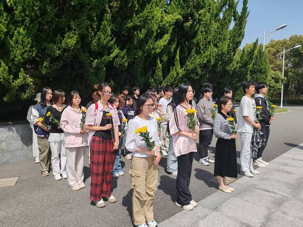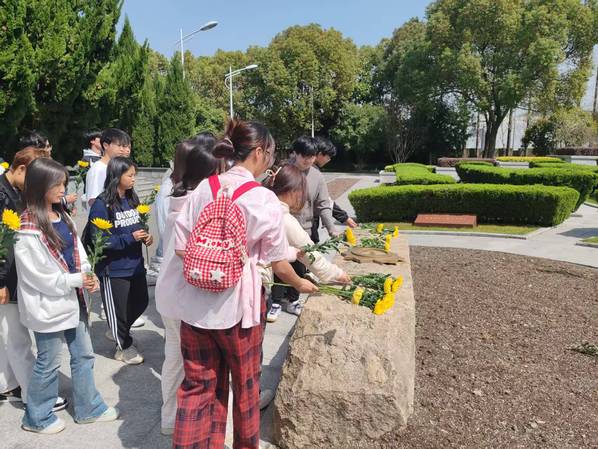 在瞻仰烈士碑林区与墓区过程中,同学们手持自备白菊,逐一为长眠于此的侯绍裘、姜辉麟等革命先驱献花。当看到碑文记载的“姜辉麟烈士就义时年仅32岁”时,学生曹士博感慨道:“这些用生命照亮民族前路的青年,正是我们新时代大学生最该追的星。”随后,师生共同观看陵园珍藏的红色教育片《永不凋谢的芳华》,该片通过数字化技术重现松江英烈群像,荣获国家级短视频奖项的9分钟完整版影像让在场同学热泪盈眶。