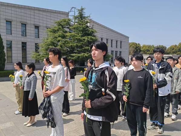 下午13时整,肃穆的祭扫仪式在烈士陵园纪念广场正式举行。在雄壮的国歌声中,师生整齐列队,面向革命烈士纪念碑肃立致敬。学生代表缓步上前,向英烈敬献特制花圈,纯白缎带上“革命精神永垂不朽”的金色字样在春风中熠熠生辉。全体人员垂首默哀,聆听《致敬曲》深沉旋律,用三分钟静默与百年前为民族解放献身的松江英烈展开跨越时空的对话。