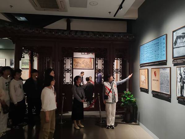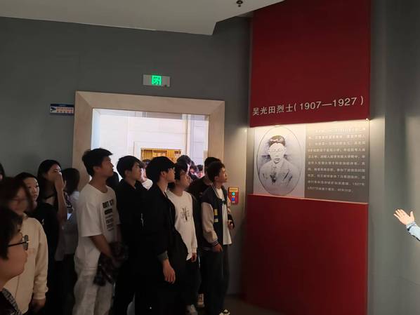 在松江英烈纪念馆的参观学习中,师生借助智能无线导览系统,重点学习了22位重点英烈的立体化展陈。全息投影技术复原的吴光田烈士书房场景前,学生李博雯驻足良久:“书桌上的《新青年》杂志、未写完的《告同胞书》,让我们触摸到革命者滚烫的初心。”智工系师生还结合专业特色,就“数字化技术在红色文化传播中的应用”与陵园管理人员展开交流。