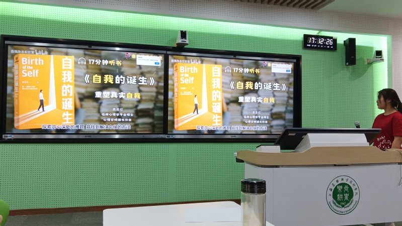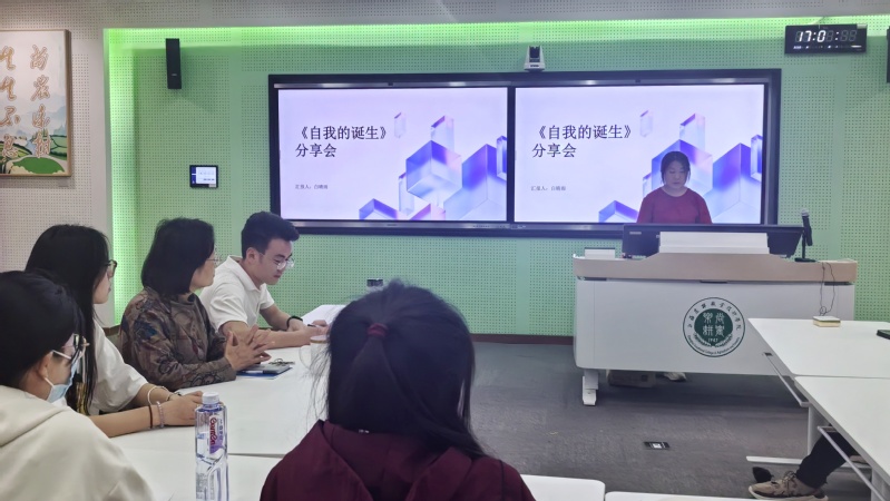 3月26日下午,在综合楼403智慧教室,“四·时”读书社开展本学期第五次读书分享活动。由宠物232班白晴雨同学分享武志红著《自我的诞生》,指导老师、图书馆馆长樊清誉主持读书分享会。