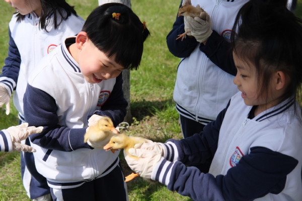 最受欢迎的当属品牌项目“农场里的语文课”,将语文课文《小公鸡和小鸭子》搬进现实场景。通过与小鸡和小鸭的真实接触,加深学生对课文的理解,结合老师的生动讲解,直观地学习动物特征及生活习性。这种“情景+理论”的创新教学模式,让知识从平面走向立体,极大激发了学生的探索欲望,现场互动热烈。
