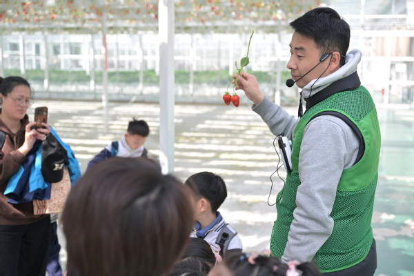 同学们通过植物识别了解了植物的药用价值与生活应用,辨识了薄荷、艾草、藿香等常见草药,亲手调配的驱蚊香囊让大家爱不释手。 在半封闭植物工厂中,大家惊叹于无土栽培、天瀑种植等现代农业技术。通过观察草莓生长环境、参与采摘实践,感受科技对农业的赋能。