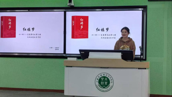 “读书不觉已春深,一寸光阴一寸金。”4月3日下午,在综合楼403教室,“四·时”读书社开展本学期第六次读书分享活动。由生物231班高锦秀同学以沉浸式分享方式带领社员们共同体验《红楼梦》第十八回。指导老师、图书馆馆长樊清誉和指导老师郭语凡与社员们一起参与沉浸式分享。
