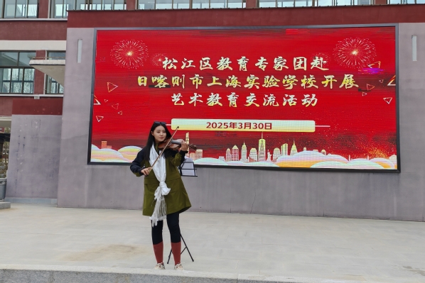 赵琳娜老师在定日县第二初级中学开设题为《琴韵雪域·沪藏情深——在党的光辉下,走向我们的新西藏》公开课,并展开两次小提琴演奏艺术交流活动。课程以音乐疗愈为主线贯穿,让学生们通过对沪藏印记的艺术转化、两地非遗文化认同的创造性表达与音乐重构,共同完成作品创作与展示。教学中不仅激发了孩子们对音乐艺术的想象力与兴趣,也让学生们在艺术实践表演中感受到民族文化的传承重要性与感染力。