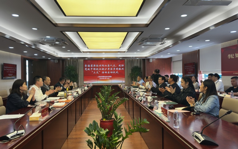 4月10日上午,2025年青海省果洛州玛沁县党政干部赴江浙沪考察乡村振兴“三交”活动启动仪式在我院举行。虹口区政府办公室副主任刘辉,玛沁县委副书记、副县长黄捷等两地领导,学院党委副书记、副院长邵阳出席活动。