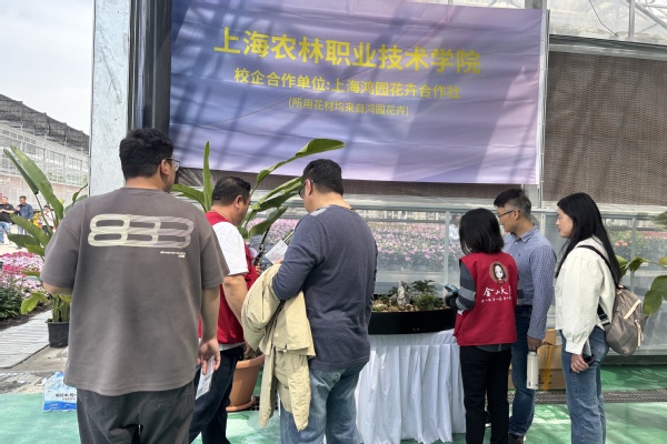 在前期筹备中,植科系主任张微微带领教师团队深入对接承办单位上海鸿园花卉专业合作社,确定了服务展会的校企合作课程。教师围绕真实展会场景中的空间规划、植物造景等问题开展针对性教学,从方案设计到施工落地,学生们全程参与全流程实践。参与项目的学生表示:“看到自己的造景作品被市民拍照打卡和媒体直播,特别有成就感!这次实践,我们真正理解了景观设计如何服务社会需求,这比课堂考试更让人成长。”