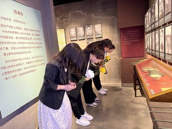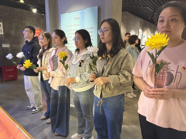 活动尾声,全体党员怀着崇敬之情,为在宋公园牺牲的烈士们鞠躬献花,以表达对先烈的深切缅怀与崇高敬意。党课结束后,支部成员面向鲜红的党旗,庄严举起右拳,重温入党誓词,许下对党忠诚、为党奉献的坚定诺言。
