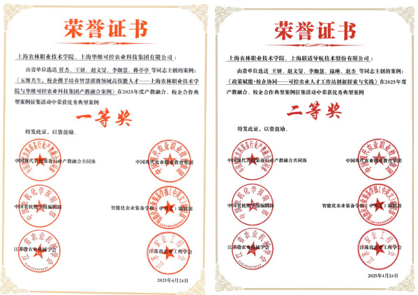 近日,中国现代农机装备产教融合共同体公布了2025年产教融合、校企合作典型案例获奖名单,智慧农业工程系报送的2个案例分别荣获一等奖、二等奖。