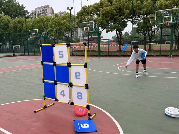 飞盘九宫格比赛于4月24日在篮球场举行。参赛者需将飞盘投掷到九宫格标靶上,不同区域对应不同分值。活动中,同学们各显神通,有的稳扎稳打地瞄准高分区,有的巧妙运用弧线技巧。现场欢呼声此起彼伏,这场活动不仅锻炼了手眼协调能力,更让大家在轻松的氛围中享受运动的乐趣。
