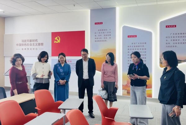 学习共享空间内现代化设施与自然采光相融合,为学生提供沉浸式学习环境;开放式自习室座无虚席,同学们或专注阅读或伏案疾书,宽敞的空间内虽人员密集却秩序井然,学术氛围十分浓厚;而“海大人文库”则集中陈列了海洋大学师生学术著作及珍贵文献,凸显学科特色与文化传承。参观过程中,双方就空间功能分区、读者服务细节及技术应用场景展开现场交流。