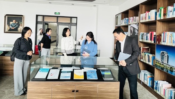 为深化馆际合作,提升图书馆服务效能,4月30日,院长陈立婧、副院长潘国俭带领图书馆一行6人赴上海海洋大学图书馆参观调研。上海海洋大学图书馆馆长高晓波,副馆长徐谦全程热情接待。双方重点围绕图书馆空间建设、阅读推广创新实践等主题,以实地观摩和座谈交流相结合展开深入探讨。
