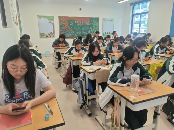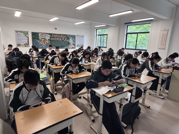 比赛期间,各班班会课化身时政知识比拼的“云端战场”。屏幕前,同学们或凝神思考,或奋笔疾书,面对涵盖国内外政治、经济、文化、科技等领域的时政题目,以扎实的知识储备沉着应答,将日常积累的时政热点转化为笔下答案,充分展现出新时代青少年心系家国、胸怀天下的精神风貌。教室内外秩序井然,浓厚的学习氛围通过网络连线在各班级间传递。
