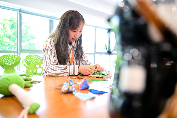 竞赛分为说课和劳动教学技能展示两个环节。在说课环节,王甜甜老师以《草木之能,方心未艾》为主题,聚焦劳动技能——在草药园学习如何采收、清洗和保存新鲜艾草;培养审美情操——进行创意艾草挂件制作。在5分钟内完成说课,并从容应对专家提问。在劳动教学技能展示环节,王甜甜老师充分发挥个人劳动教学技能特长,在2小时内完成了作品。