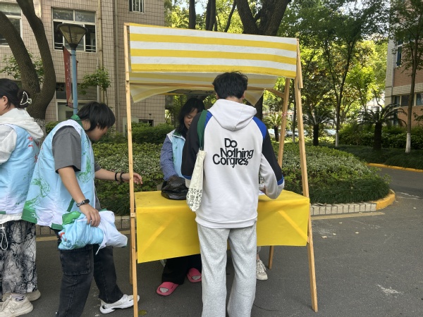 4月29日下午,一教前门口空地热闹非凡,一场名为“爱心义卖·善行校园”的物品义卖公益活动在此温暖上演。此次活动积极响应国家可持续发展战略,旨在提高资源利用率,同时激发学生参与公益的热情。