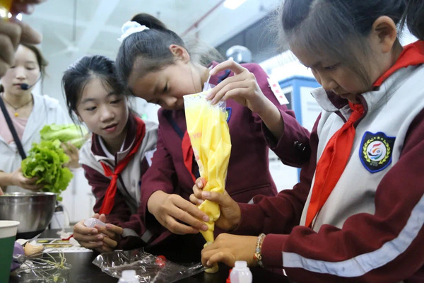 在“蛋与生活”的主题课程中,以生活中常见的沙拉酱作为切入点,让同学们尝试用最简单的方式进行老式沙拉酱的制作及品尝,在课堂中为同学们融入健康生活,科学饮食的理念。