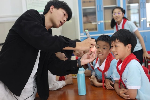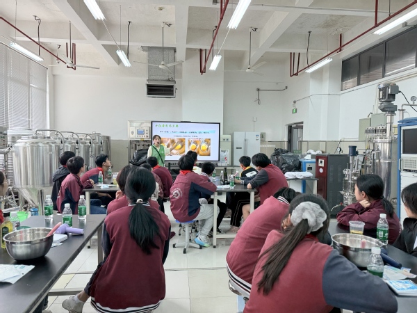实训基地老师通过多媒体展示与实物观察相结合的方式,带领同学认识各式不同种类的蛋与禽类动物生命来源;课上,同学们学习用手电筒观察受精蛋中血管的分布等,沉浸式体验让原本停留在餐桌认知的蛋类知识,变成了一堂生命教育课。