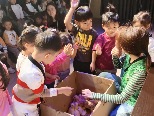 课堂伊始,老师们通过角色扮演将孩子们带入实际情景当中,带领孩子们共同探究小鸡与小鸭之间的区别。随后,孩子们近距离接触小鸡小鸭,并保证会在新家照顾好“新朋友们”。课程结束后,实训基地将小鸡小鸭捐赠给学校,让课程成果在两校间结出更大果实。在辰塔路小学的捐赠仪式上,实训基地主任富剑文表示,希望通过劳动教育课提升同学们的实践能力,树立正确的劳动价值,增强责任感与团队意识。