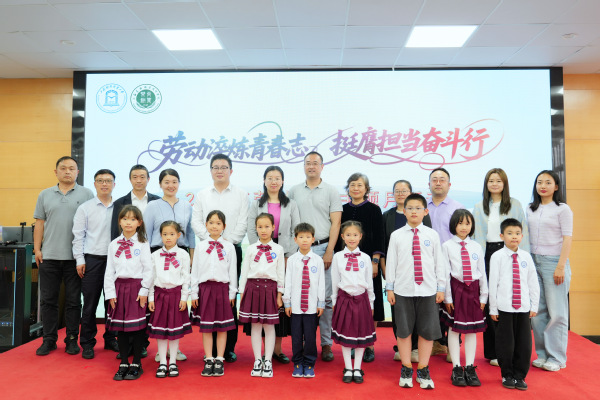 来自两校的学生代表缪亚婧、韦可欣在发言中分享了劳动带来的成长蜕变以及新时代如何理解劳动的价值。小学生代表表演了小合唱《劳动最光荣》。