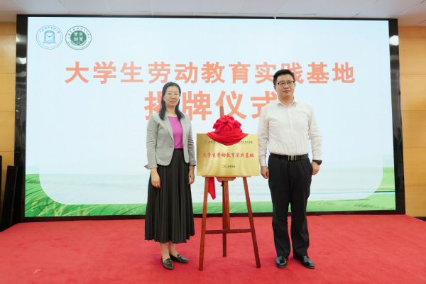 沈艺与邵阳共同为两校共建的劳动教育基地揭牌。