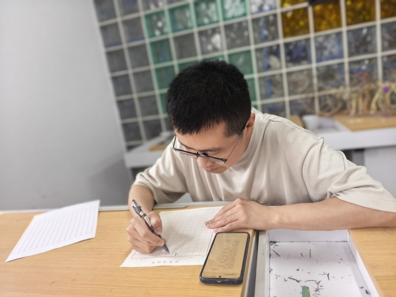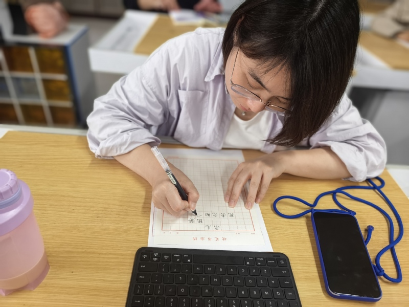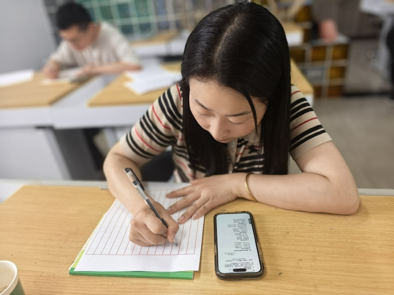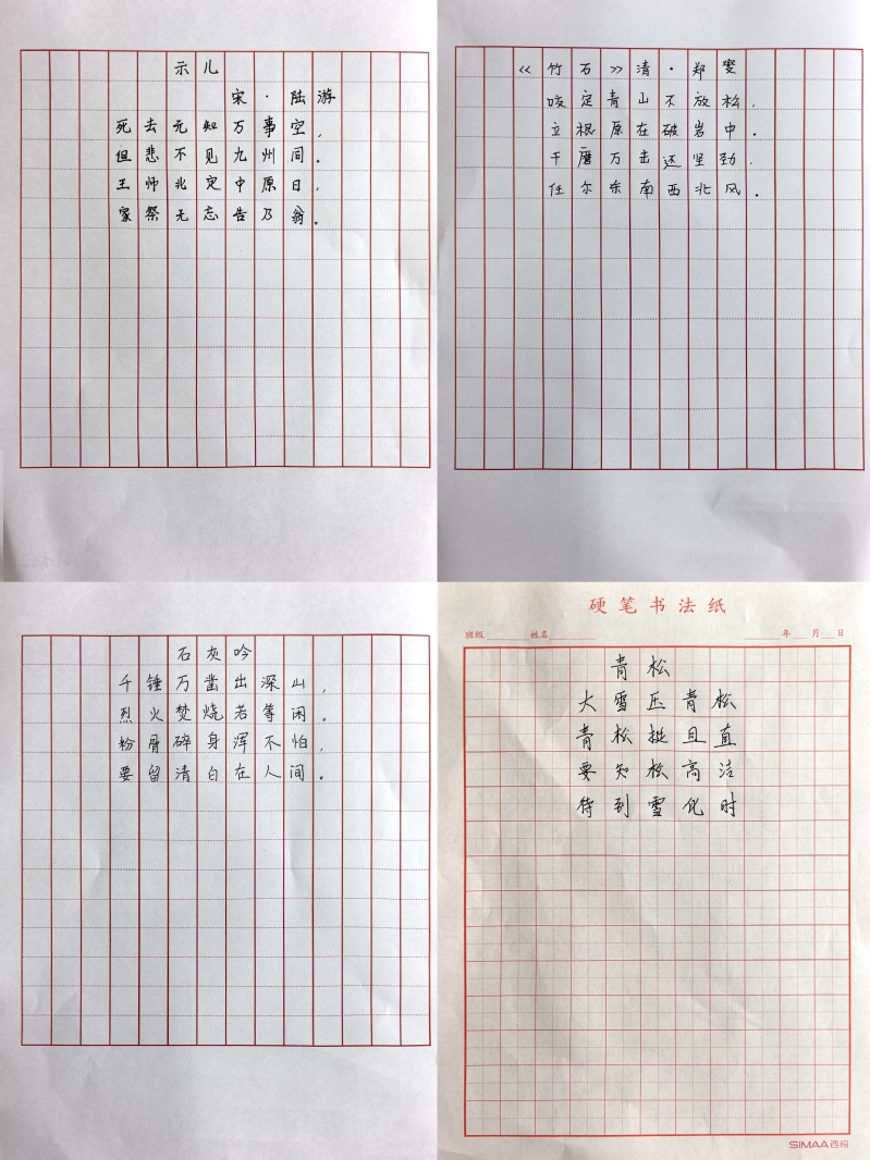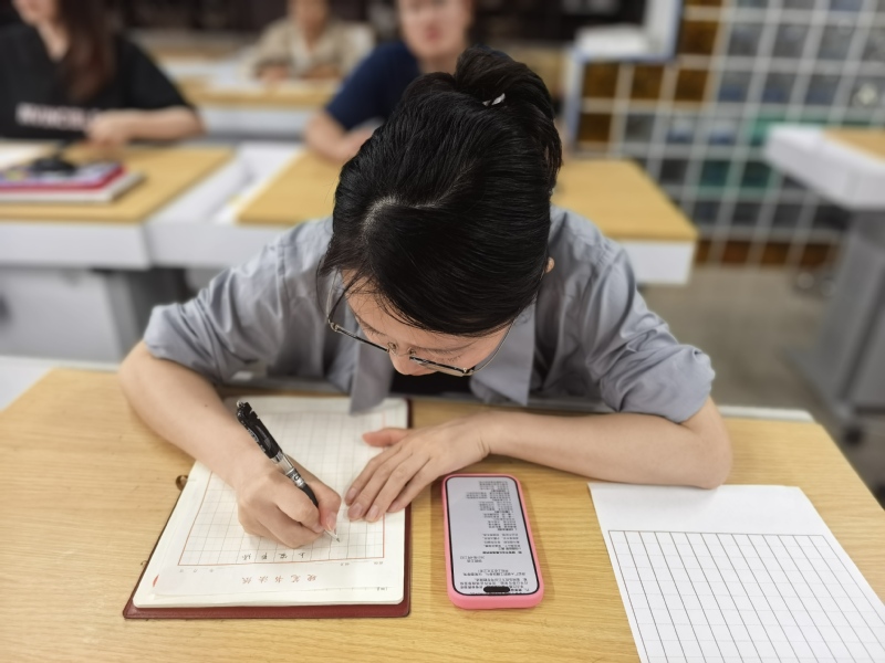 活动现场,党员教师们以笔为“廉”发声,工整书写《爱莲说》选段、《石灰吟》《竹石》等经典诗文。笔尖划过纸面,“粉骨碎身浑不怕,要留清白在人间”“咬定青山不放松,立根原在破岩中”等名句工整呈现,刚劲有力的字迹既展现硬笔书法的独特魅力,又传递廉洁文化的深刻内涵。书写时,党员教师边写边相互交流心得,分享对廉洁的理解,认为书写廉字,既是艺术创作,更是心灵洗礼,时刻警醒自己坚守廉洁底线。现场作品风格多样,有的字体端正大气,尽显沉稳风范;有的笔画清秀流畅,饱含细腻情怀。横竖撇捺间,党员教师感悟廉洁真谛,坚守教育初心;起承转合处,皆是对初心的叩问与对使命的承诺,彰显出教育工作者的责任担当。
