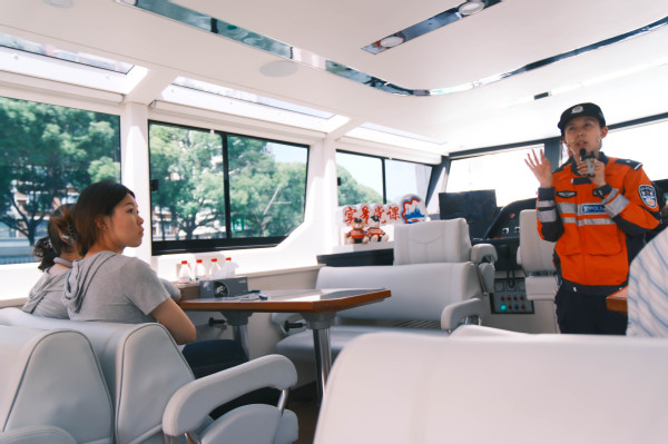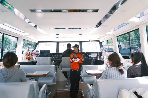 当日下午,同学们登上公安艇。随着引擎轰鸣,苏州河水上派出所民警化身“移动讲师”,结合沿岸建筑与革命遗址展开深度讲解。从四行仓库西墙的斑驳弹痕,到邮政总局大楼玻璃上的历史印记;从上海总商会旧址的厚重底蕴,到福新面粉厂旧址的岁月沉淀……学生们在沉浸式的讲解中,近距离触摸到这座城市的红色脉搏。