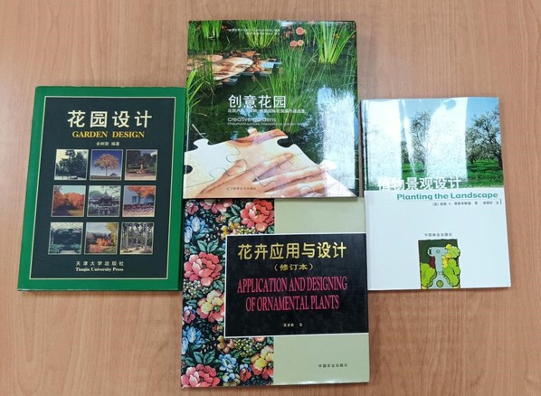 还有《中国’99昆明世界园艺博览会园艺百科全书》上中下三册,对醉心于园艺的师生极具翻阅和研究价值。《创意花园》《花园设计》《花卉应用与设计》《植物景观设计》对于从事园林设计的师生有着重要的参考意义。