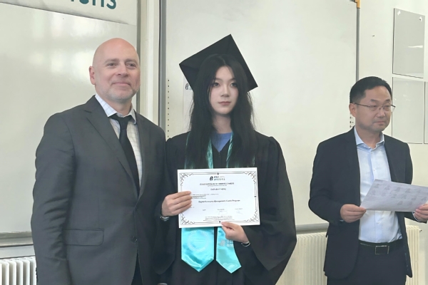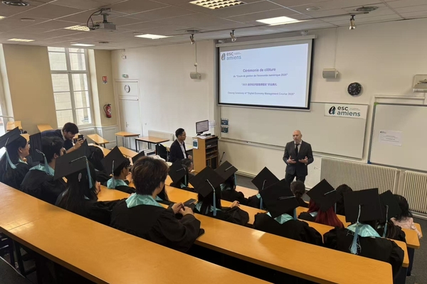 5月21日,法国亚眠高等商学院与我院联合举办的“2025中法数字经济班”在法国亚眠高等商学院举行结业典礼。来自两校的校方代表、教师及14名学员参加本次活动。