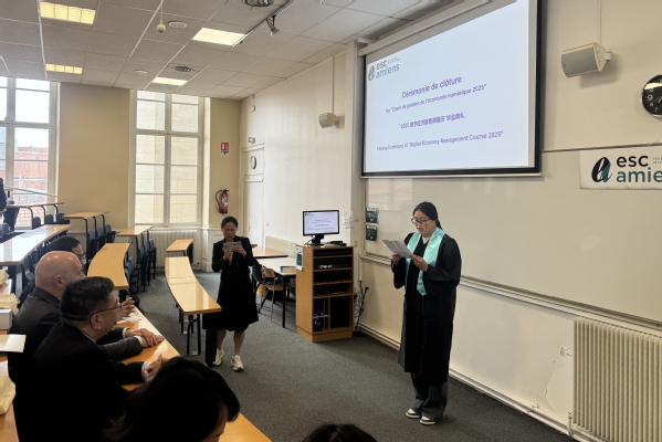 5月21日,法国亚眠高等商学院与我院联合举办的“2025中法数字经济班”在法国亚眠高等商学院举行结业典礼。来自两校的校方代表、教师及14名学员参加本次活动。