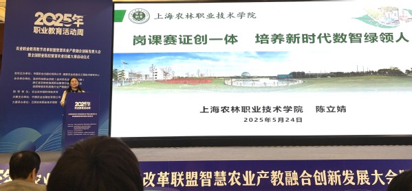 同日下午,陈立婧应邀在第四届乡村振兴与职业教育瓯越论坛上作题为《岗课赛证创一体,培养新时代数智绿领人》的典型经验交流报告,介绍我院紧扣国家和上海市乡村振兴及智慧农业发展战略,以“高端化、精品化、品牌化”农业发展模式为创新范式,培养新时代“数智绿领人”的鲜活案例。产教融合方面,与华维集团、惠和种业等企业深度合作,依托智慧农业产教融合实训基地和多个技能大师工作室,开设多个现代学徒制班级,在植保无人机、园艺机械、园艺设施等课程实现岗课赛证创一体化人才培养;科教融汇方面,我院聚焦种源创新与智能栽培技术,深耕“一花一果一菜一药一中心”品牌,承担上海市科委和农委项目,研发草莓立体栽培装置,推动智慧农业创新应用;国际交流方面,在泰国清莱皇家大学成立智慧农业联合培养基地,成立农林职教援非中心,获评“一带一路”职业标准示范单位,在南非国际赛中斩获金奖,稳步推进职教出海。