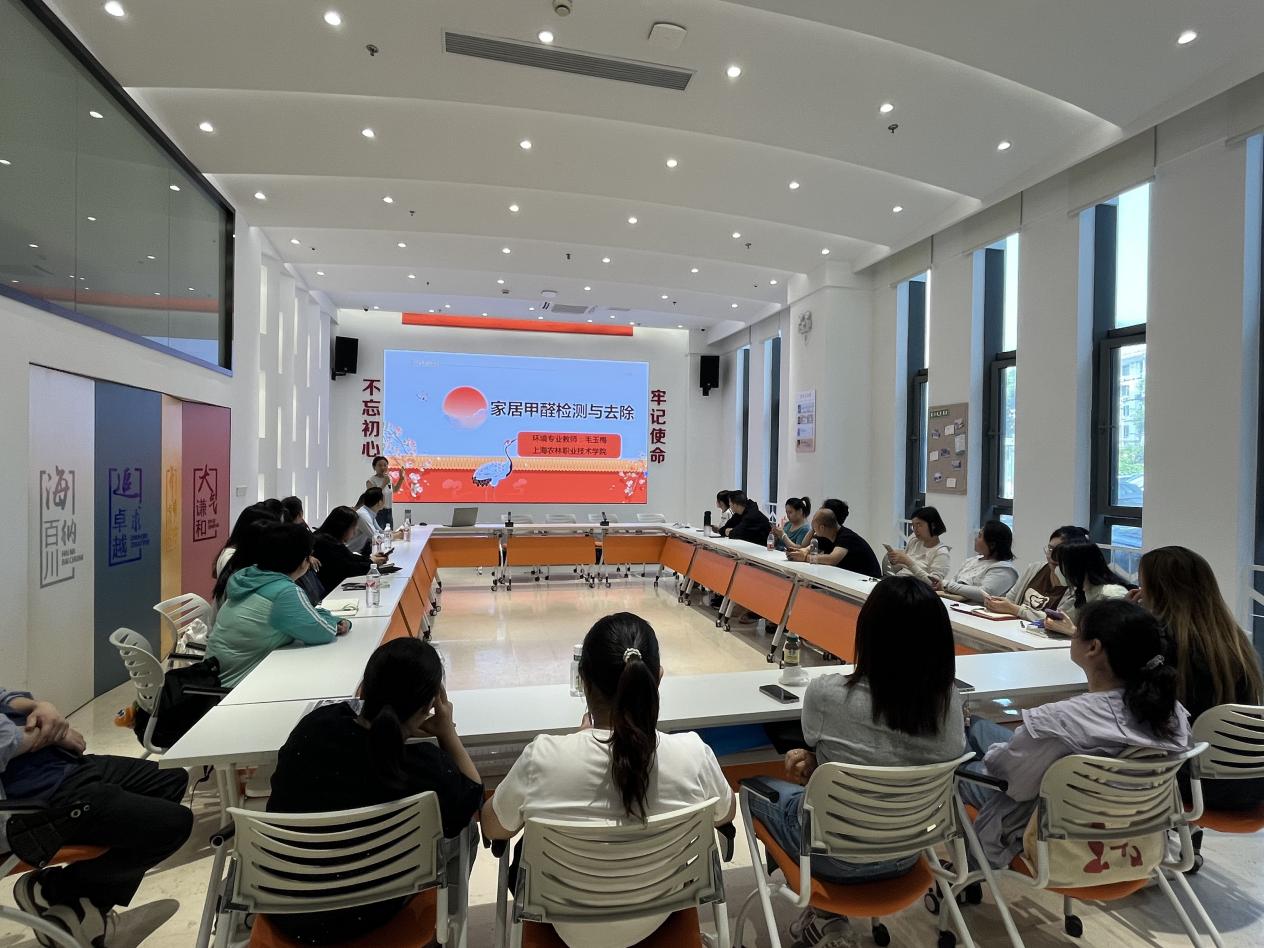 在松江科技节期间,5月22日,科研处带领生物医药与健康系老师走进岳阳街道,为社区居民开展家居甲醛检测与去除为主题的科普活动,助力社区居民打造健康安全的居住环境。