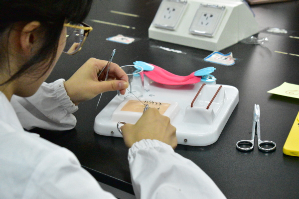 手术缝合现场,同学们细致地进行缝合操作,每一针、每一线都体现出扎实的动物医学基础技能。