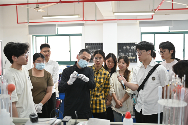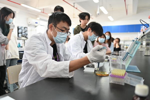 在移液枪技能操作项目中,选手们全神贯注,精准操作,以极高的精度完成液体的移取,展现出严谨的科研态度。