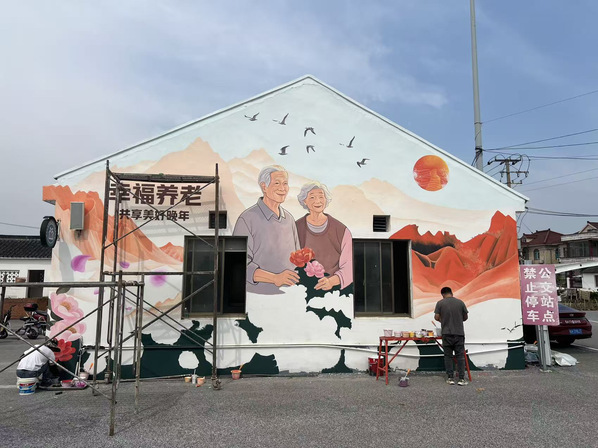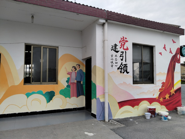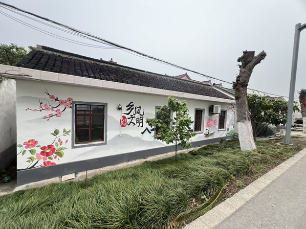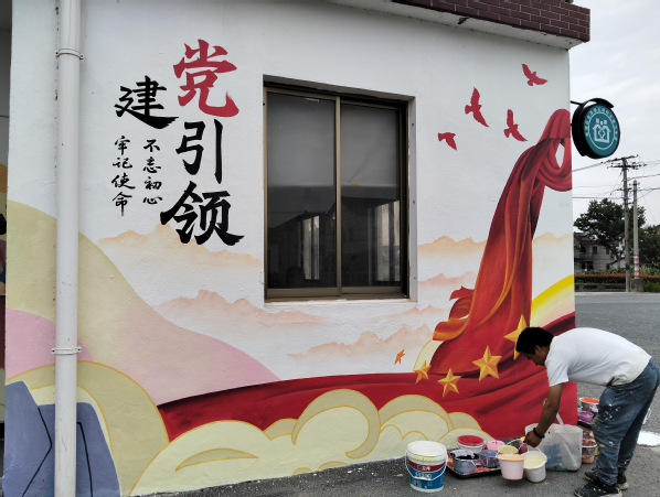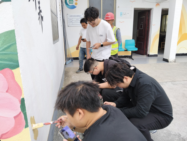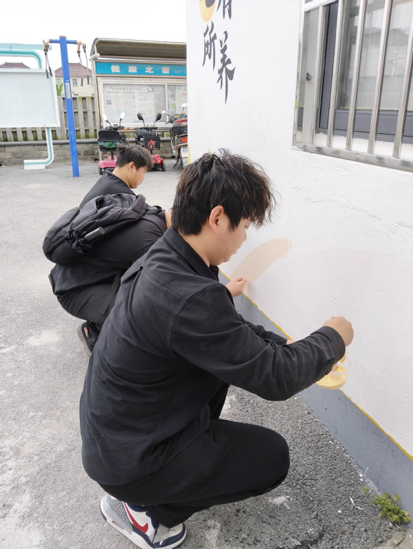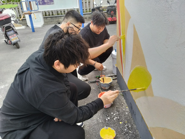 今年4月至5月,创意系风景专业负责人张婷带领风景园林创新中心工作室成员,持续为青浦区王港村提供墙绘设计服务。本次设计在延续2024年项目的基础上,将红色党建与养老主题相结合,展现乡村红色文创和康养文化结合的设计主题。