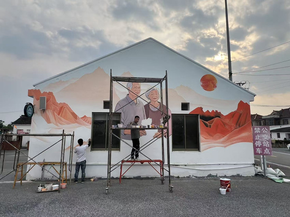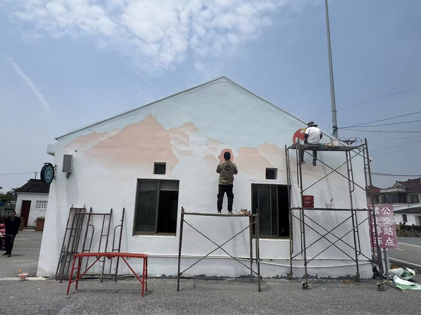 风景工作室成员墙绘服务过程