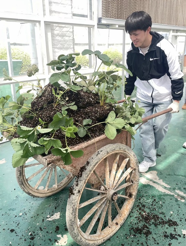 实训基地设施完备,既有传承农耕文明的工坊,也有配备先进技术的现代农业示范园区。学生在传统农事体验,如种草莓、插秧等活动中,磨炼意志,在现代农业技术应用中,培养创新思维。生物医药与健康系李鑫梅同学分享道“一开始觉得这些农事操作很简单,可真正上手才发现,每一个步骤都需要十足的耐心和巧妙的技巧。虽然过程很累,但内心却无比充实,因为切实感受到了劳动带来的成果与收获”。数字经济与创意系杨方伟表示:“团队合作让原本繁重的劳动变得轻松愉快。大家分工明确、互相帮助,让我深刻体会到了劳动人民的辛勤付出,每一份农产品都饱含着他们的心血与汗水,值得我们倍加珍惜”。