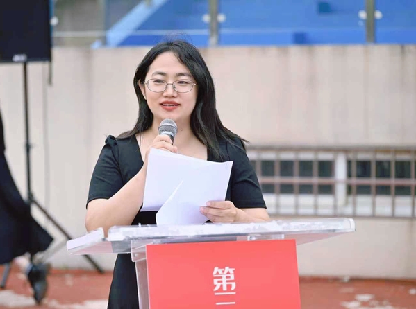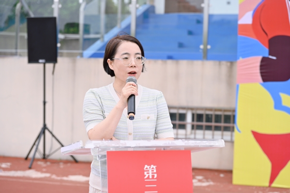 基础部主任宋常英宣布“迎‘篮’而上‘足’够精彩”校园足球篮球联赛院级比赛正式开赛。