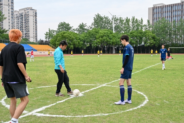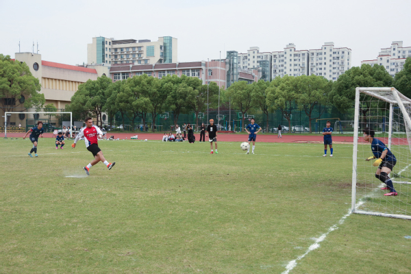 足球场上同样激战正酣,首场足球赛在创意系和动科系之间展开。绿茵场上,运动员们奋勇拼搏,尽情挥洒汗水,攻防转换间尽显竞技风采。精彩的射门、严密的防守,引得场外观众阵阵欢呼,加油助威声此起彼伏。