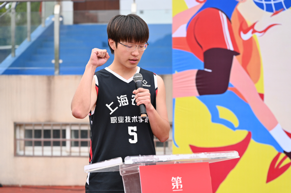 裁判员代表工程232班郭晓同学和运动员代表环境232班王鑫浩同学庄重宣誓,他们的誓言坚定有力,体现了对公平竞争的坚守和对拼搏精神的追求。