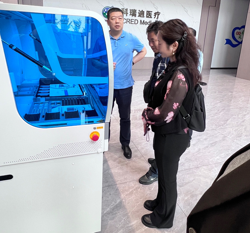 调研团队先后走访嘉兴科瑞迪医疗器械有限公司、桐乡市银海牧业专业合作社。在科瑞迪公司,双方围绕农产品检测设备研发、功能食品开发等领域展开技术交流,探讨建立联合实验室的合作可能;在银海牧业,针对实验动物培育技术优化、生物制品研发等需求,提出引入高校科研资源与科普研学活动的合作方向。