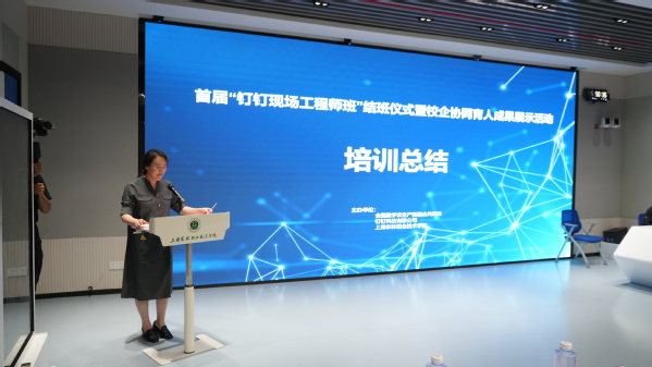 由全国数字农业产教融合共同体、钉钉科技有限公司、我院联合举办的首届钉钉现场工程师班结班仪式暨校企协同育人成果展示活动于6与9日举行。阿里巴巴钉钉上海大客户部总经理林诺及8家生态企业CEO,院长陈立婧、副院长张江、潘国俭、教务处及智工系师生代表,共同见证28位学员的成长蜕变。