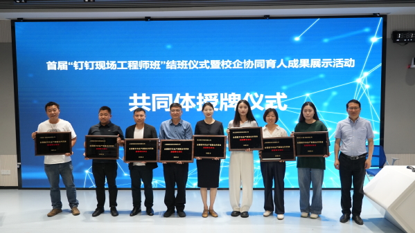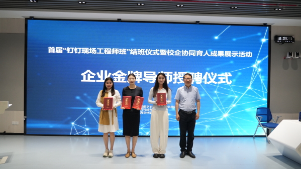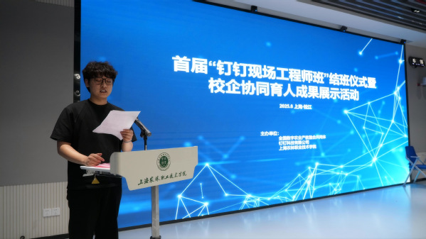 由全国数字农业产教融合共同体、钉钉科技有限公司、我院联合举办的首届钉钉现场工程师班结班仪式暨校企协同育人成果展示活动于6月9日举行。阿里巴巴钉钉上海大客户部总经理林诺及8家生态企业CEO,院长陈立婧、副院长张江、潘国俭、教务处及智工系师生代表,共同见证28位学员的成长蜕变。