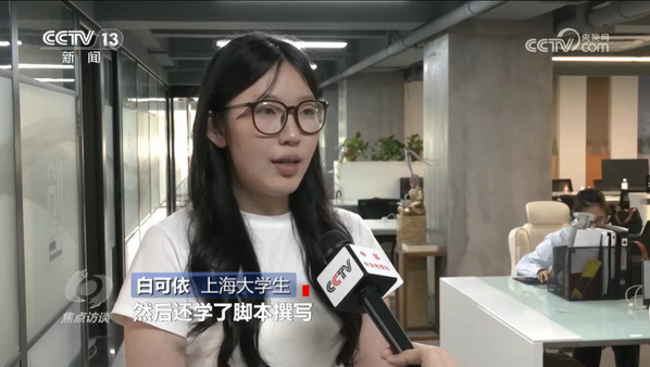 近日,中央电视台《焦点访谈》栏目聚焦就业专题,我院2023级文创专业学生白可依作为“数智融媒乡村振兴学徒制班”的学生代表接受了央视记者采访。
