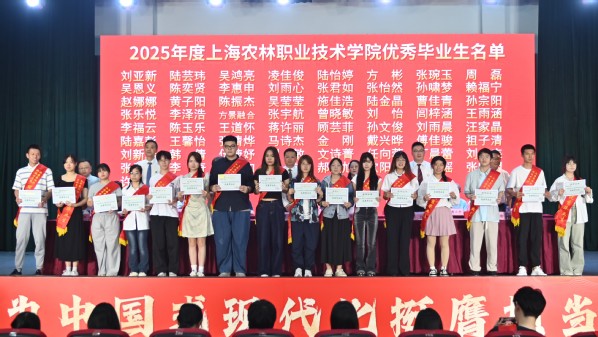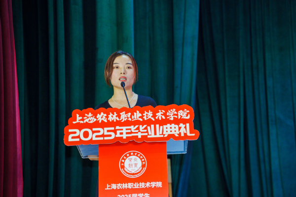 毕业典礼在雄壮嘹亮的国歌声中拉开序幕。院长陈立婧代表全体师生向学有所成、顺利毕业的2025届全体毕业生表示祝贺,为他们的成长与进步感到欣慰。随着技术的发展与科技的创新,人工智能正以前所未有的速度重塑着世界的面貌,希望同学们坚守道德力,做有温度、有担当的社会新人;点燃内驱力,锤炼主动求变、自我超越的品格;永葆求知力,养成终身学习、跨界融合的习惯。党委副书记、纪委书记陈谊宣读《关于授予潘孙焱等49名同学“2025年度上海市普通高等学校优秀毕业生”和刘亚新等65名同学“2025年度上海农林职业技术学院优秀毕业生”荣誉称号的通知》;副院长张江宣读《上海农林职业技术学院关于准予2025届毕业生毕业的决定》;党政领导现场颁发上海市高校优秀毕业生、学院优秀毕业生和学生毕业证书。