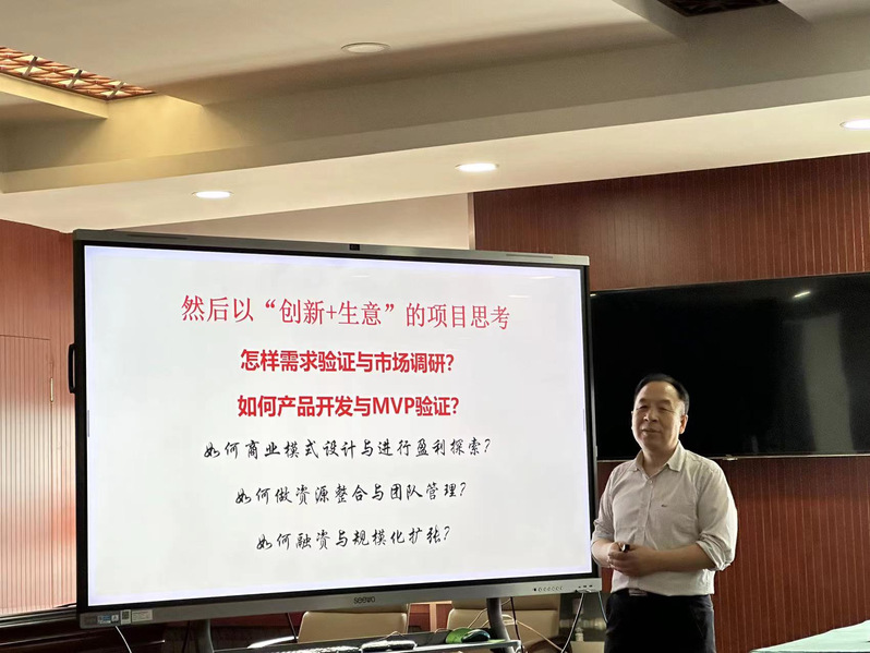 举办创客大讲堂系列活动,邀请中科院向世清教授主讲“科创时代创新者的底层逻辑”:拆解科技创新三级跳路径(技术→产品→社会应用),指导学生通过用户痛点分析定位创新方向。举办中国国际大学生创新大赛(2025)校内路演,学生创新创业能力持续提升,新增大创项目12项,5支团队晋级“互联网+”校赛决赛。