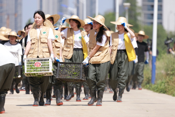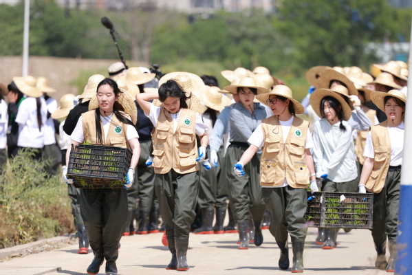 烈日当空,水田里倒映着青春的身影。农林学子们俯身插下每一株秧苗,感受着“粒粒皆辛苦”的深意。汗珠顺着年轻的脸颊滑落,融入滋养秧苗的泥水之中。“土地是不会骗人的,庄稼在生长,你也在生长。”这句《种地吧》中的金句在插秧现场得到了生动诠释。