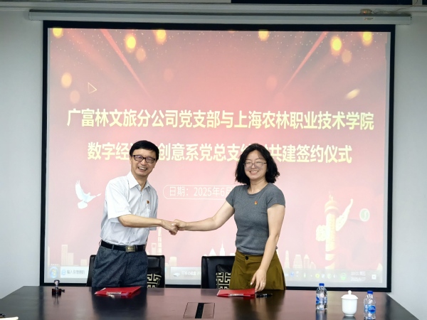 6月27日,在松江广富林文化遗址文旅党支部会议室,创意系党总支与广富林文旅党支部举行交流座谈暨结对共建签约仪式。创意系主任路以兴、党总支副书记张媛、部分党员和专业老师老松江大学城建设发展有限公司广富林文旅分公司经理俞志贤,党支部书记、副经理倪飞东携党支部委员参加。